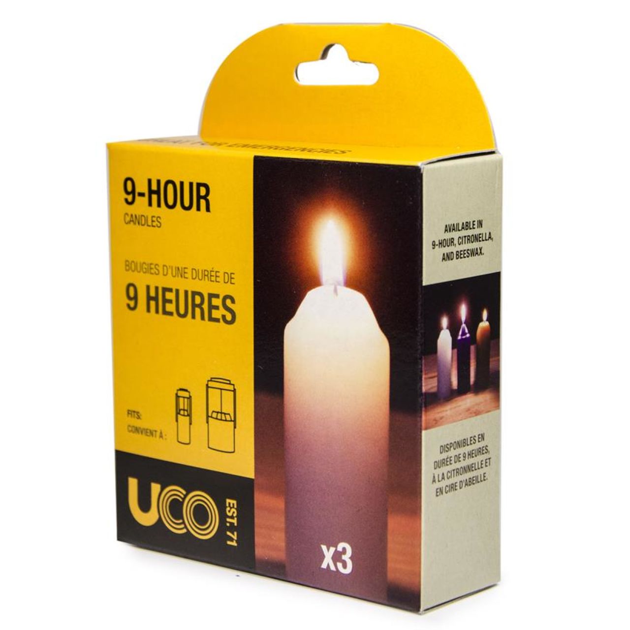 9-Hour Candles are specially designed for use in the UCO Candle Lanterns. UCO has developed and designed their 9-hour candles by fine-tuning the wick size and the wax formula to optimize burn time and reduce soot build-up in candle lanterns. Enjoy more light, longer.