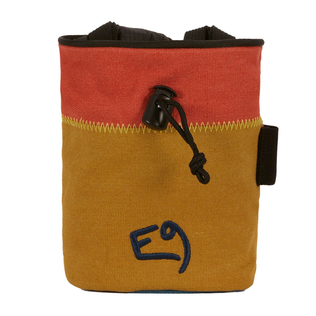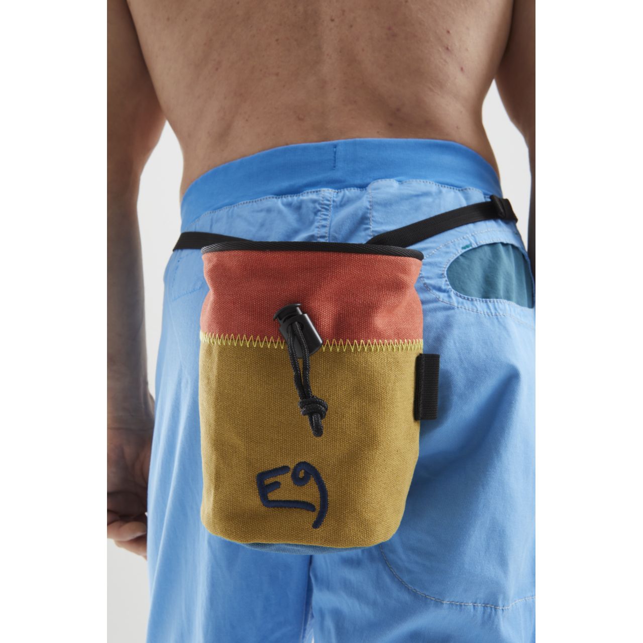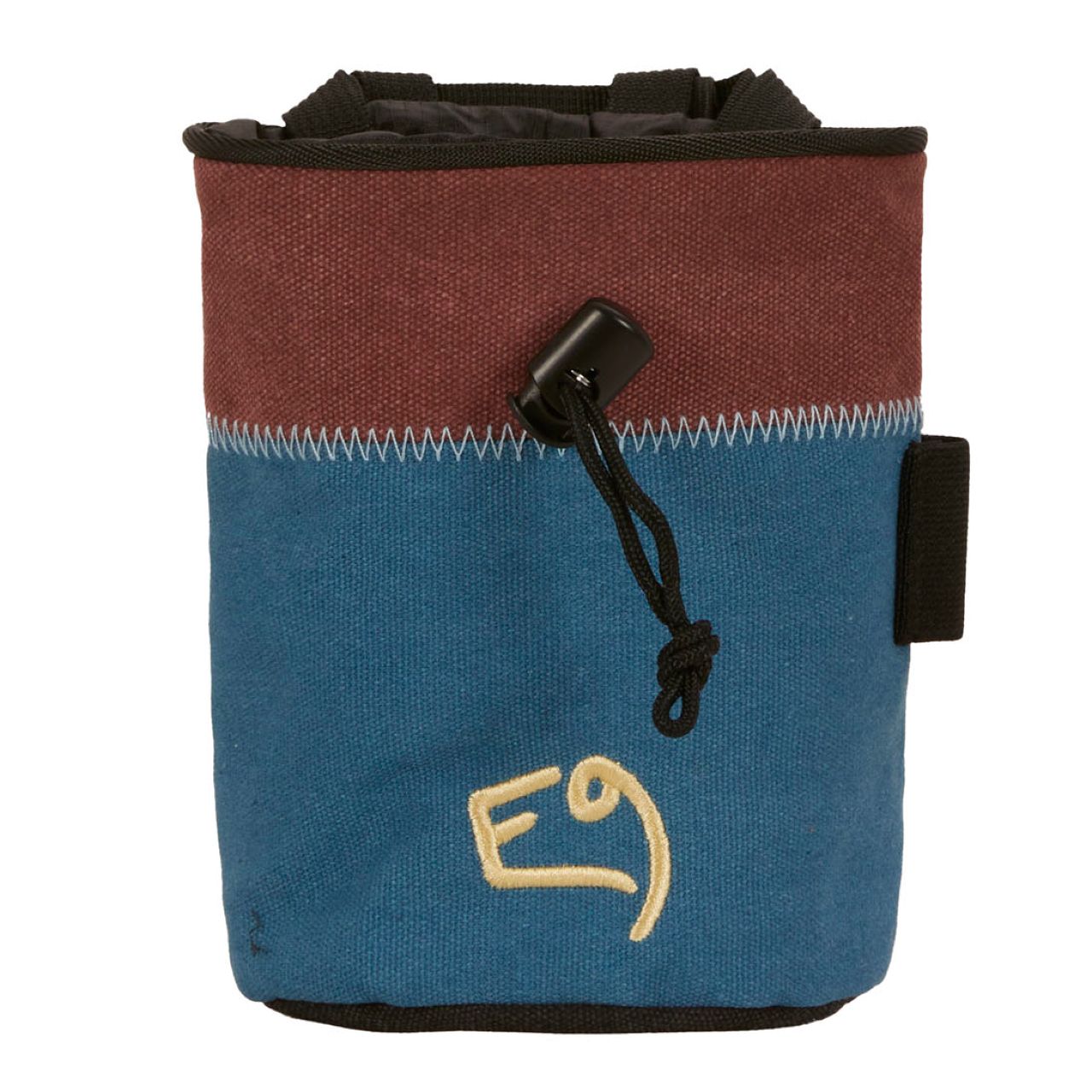 The E9 Aglioz Chalk Bag is made of 100% cotton, with a brush holder and adjustable waistbelt with quick-release clip.