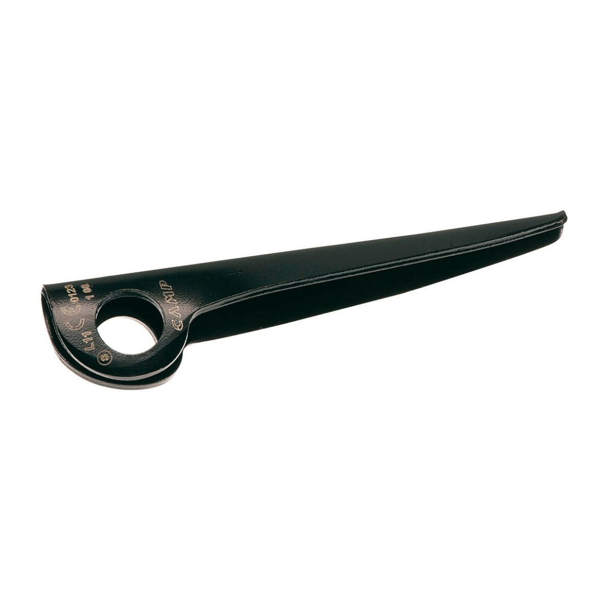Most pitons rely on compression of the metal and leverage from directional pull for their holding power. The U shape of the shaft on the Corner piton adds an additional holding force by creating spring tension when the piton is driven into a crack proportionately smaller than its width.