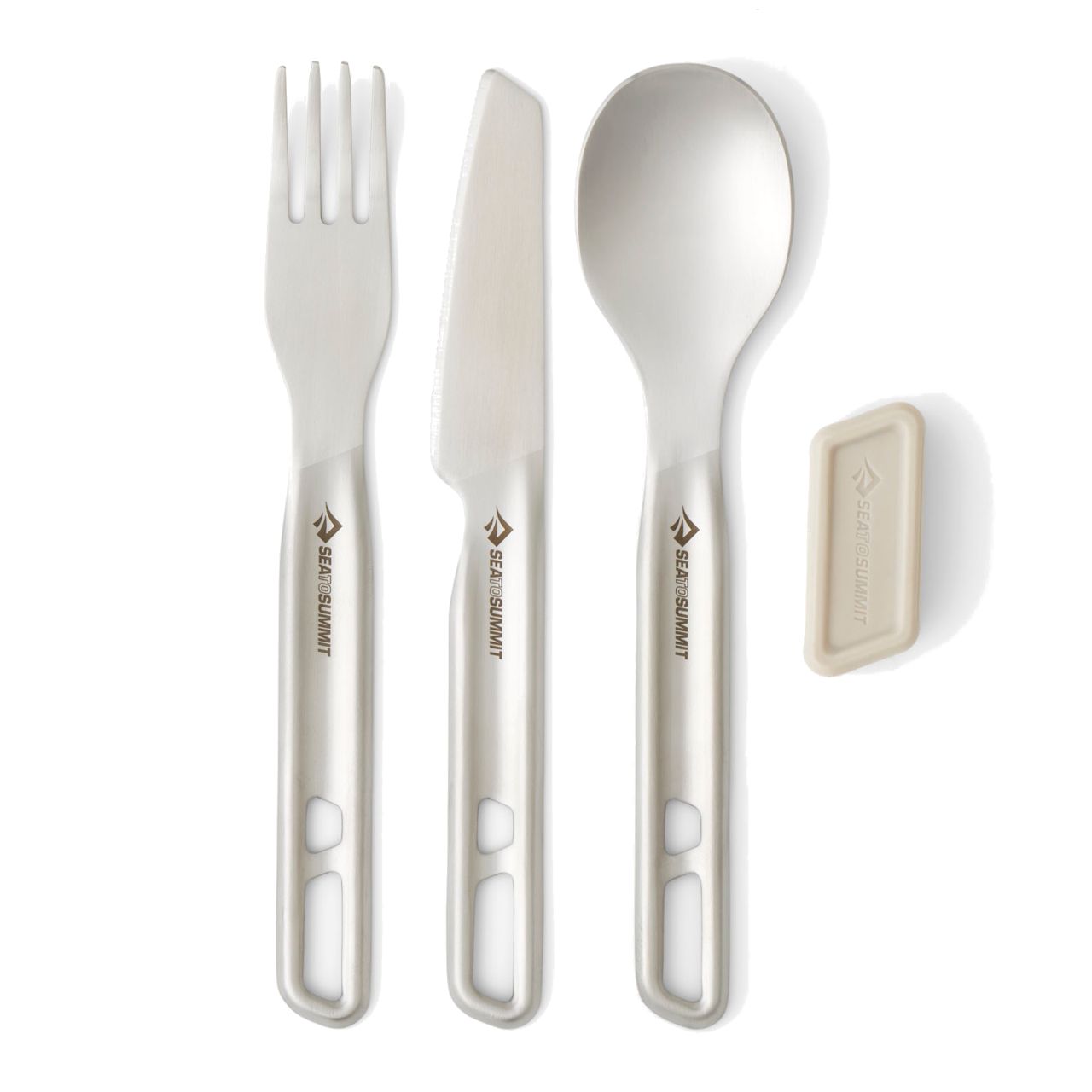 | Features | Built to last with high-strength 304 stainless steel for added durability. Set includes a knife, fork, and spoon that nest together and a magnetized silicone rubber keeper. Magnetized silicone rubber keeper to hold the set together, prevent sliding, and provide rattle-free storage during transport. Ergonomic shape for a more comfortable feel, the handles are matte-finished for better grip, and the ends are polished to deliver a more enjoyable dining experience. All of these items are dishwasher safe. Sea to Summit Guarantee is offered for the Lifetime of this product |