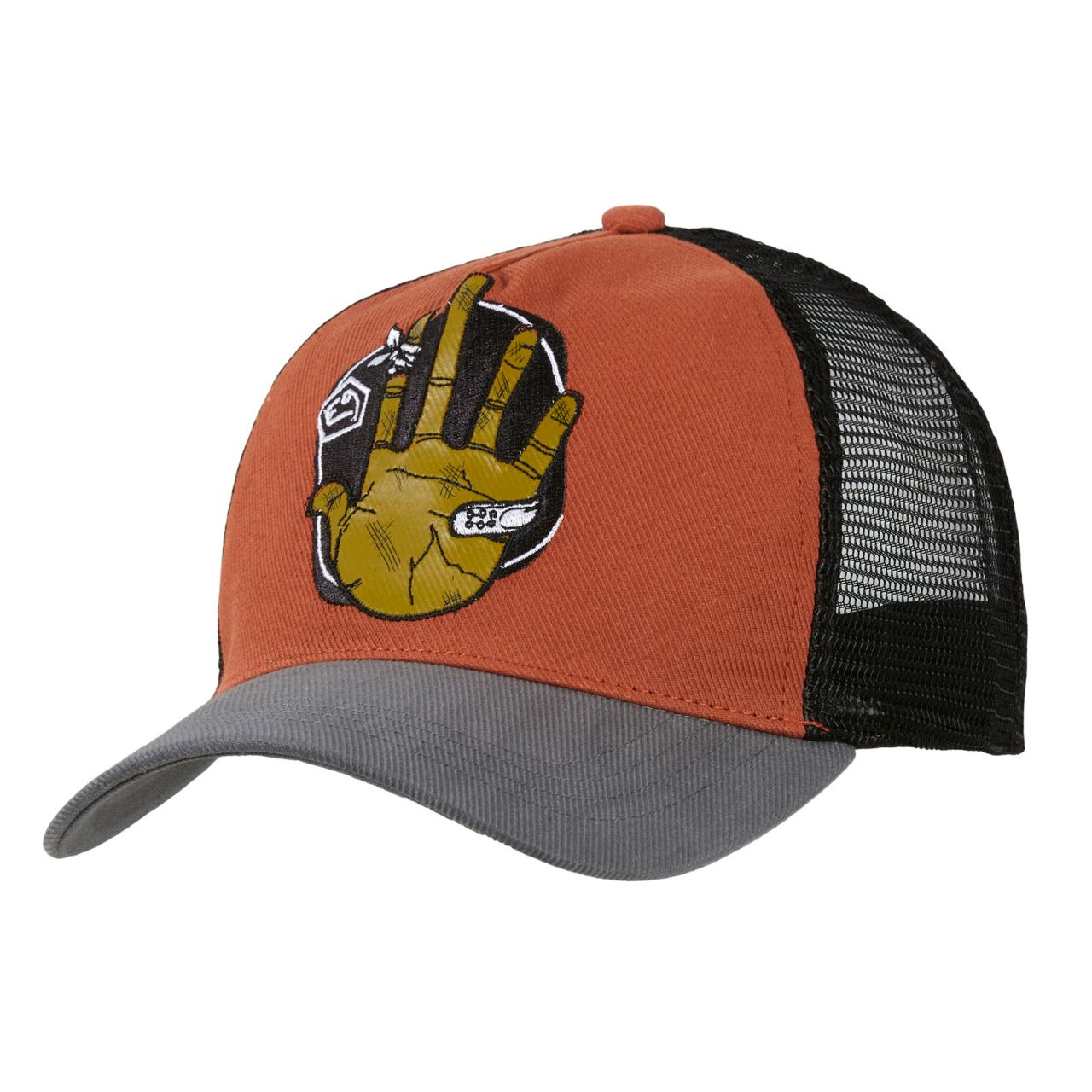 Trucker hat made of breathable and lightweight cotton and polyester. Climber’s hand printed and embroidered on front panel. Adjustable fit. One size.