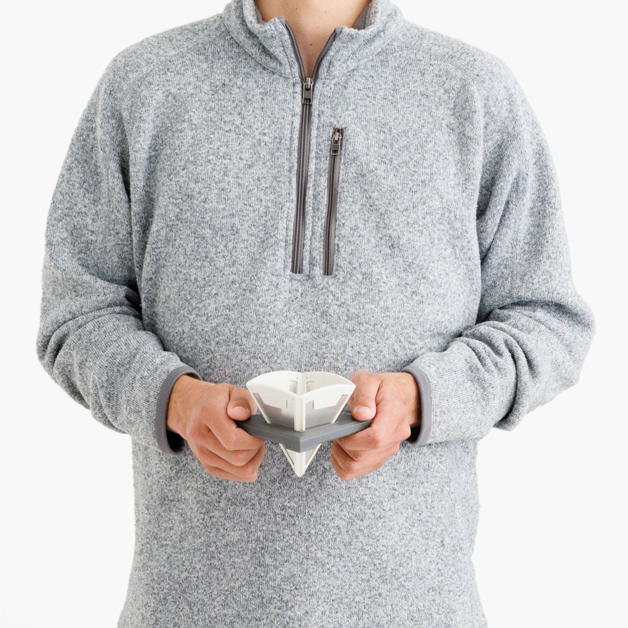 The Frontier Ultralight Collapsible Pour Over folds flat for storage in its polypropylene mount base, then pops out when needed to make a perfect pour-over brew. The easy-to-clean stainless steel mesh filter is sized just right for one serving (approx. 30g) of ground coffee and formed to hold the grounds but filter the coffee oils for a rich, satisfying cup of coffee.