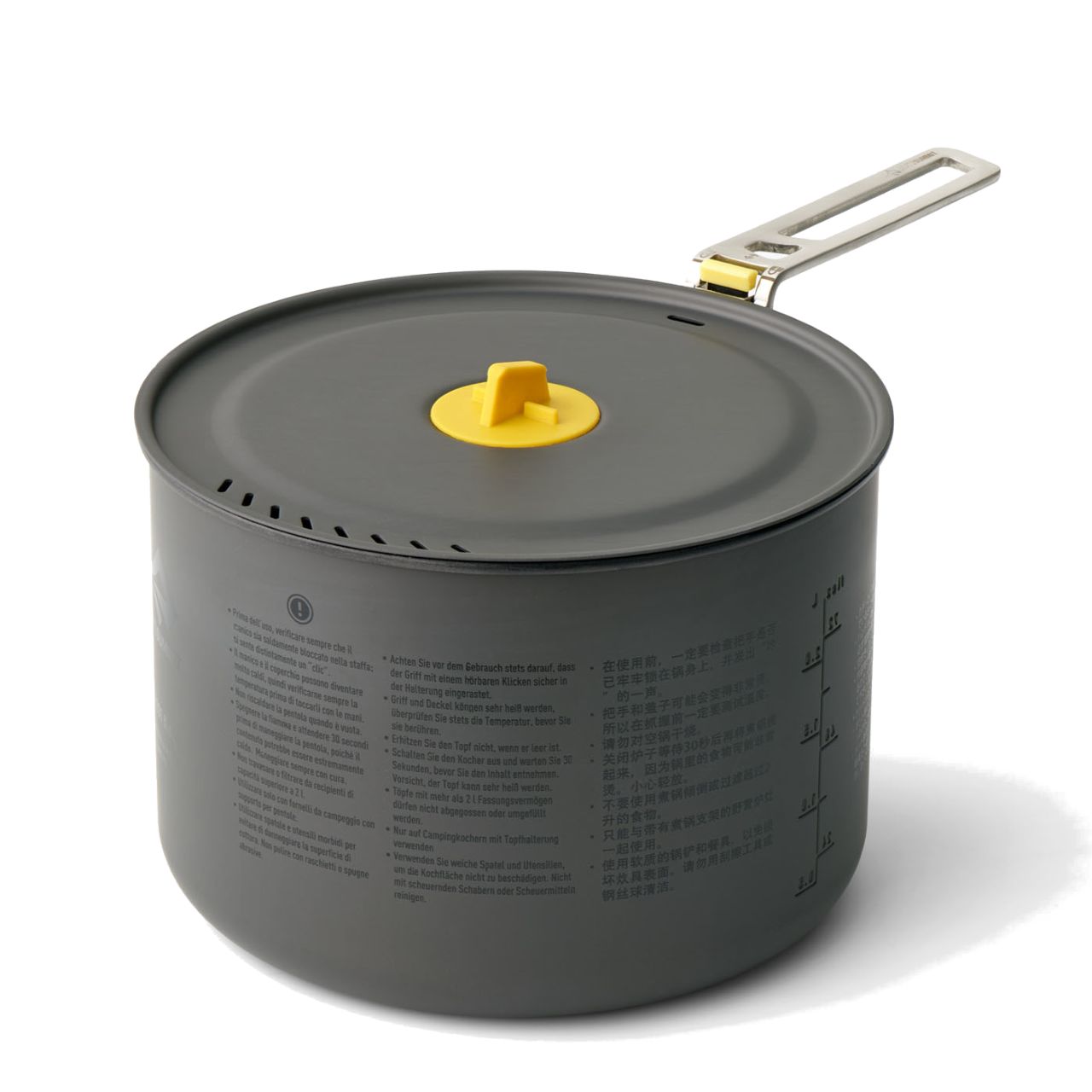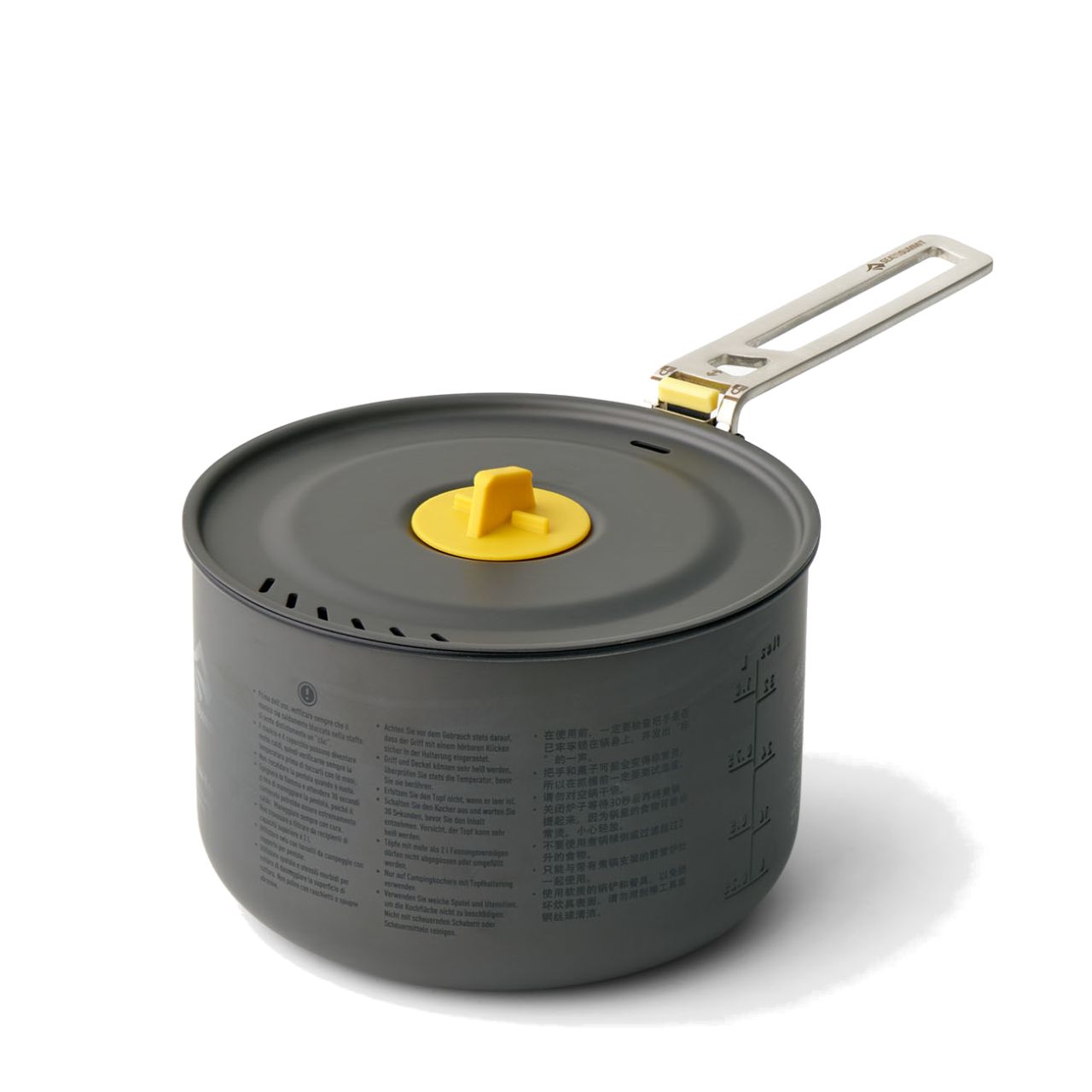 | Features | Available in three sizes – 1.3L, 2L, and 3L to meet the needs of a wide range of camp kitchens. Hard-anodized aluminum alloy for excellent heat transfer and ceramic non-stick coating for easy cooking and clean-up. Removable Click-Safe handle allows secure handling and can be reversed to hold the lid and nesting contents in place for storage. Lids feature an easy to hold grip and silicone rubber patent-pending LidKeep to conveniently clip the lid to the rim of the pot. Large radius between base and sidewalls makes it easy to turn and flip food. Sea to Summit Guarantee is offered for the Lifetime of this product. |