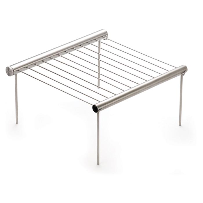 | Other Features | Collapsible grill is perfect size to grill food for 2–3 people. Grill parts fit inside stainless steel tube for easy and compact storage. Bail for hanging in storage. Includes 1 thick tube with a stopper, 1 thin tube with a cleaning groove, 2 outer grill rods with hooks and threads, 10 grill rods, 4 grill feet. Dishwasher safe. |