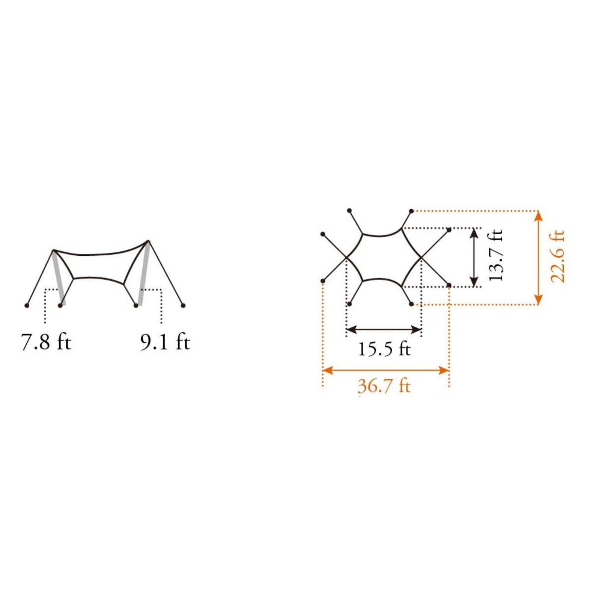 | Other Features | Water pressure resistant up to 3,000 mm. Poles absorb shock from natural elements. Guylines at each corner keep tarp tight and taut. Heavy reinforced sewing keeps tarp from rips and tears. Blocks sun rays keeping area underneath protected. Two-pole design keeps tarp minimal but sturdy. |