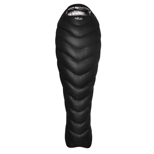 Weighing in at just 925g, it contains 600g of 900FP goose down. The chevron-style baffle design keeps the down in position, optimizing core warmth and reducing the amount of fabric needed compared to traditional horizontal baffles. The outer is made from Rab’s own wind- and water-resistant recycled Atmos™ fabric. The bag has a narrow mummy shape to minimize bulk, lightweight zips and pulls, and comes with a lightweight, waterproof, roll-top compression sack for protection from the elements and a small pack size while on the move.