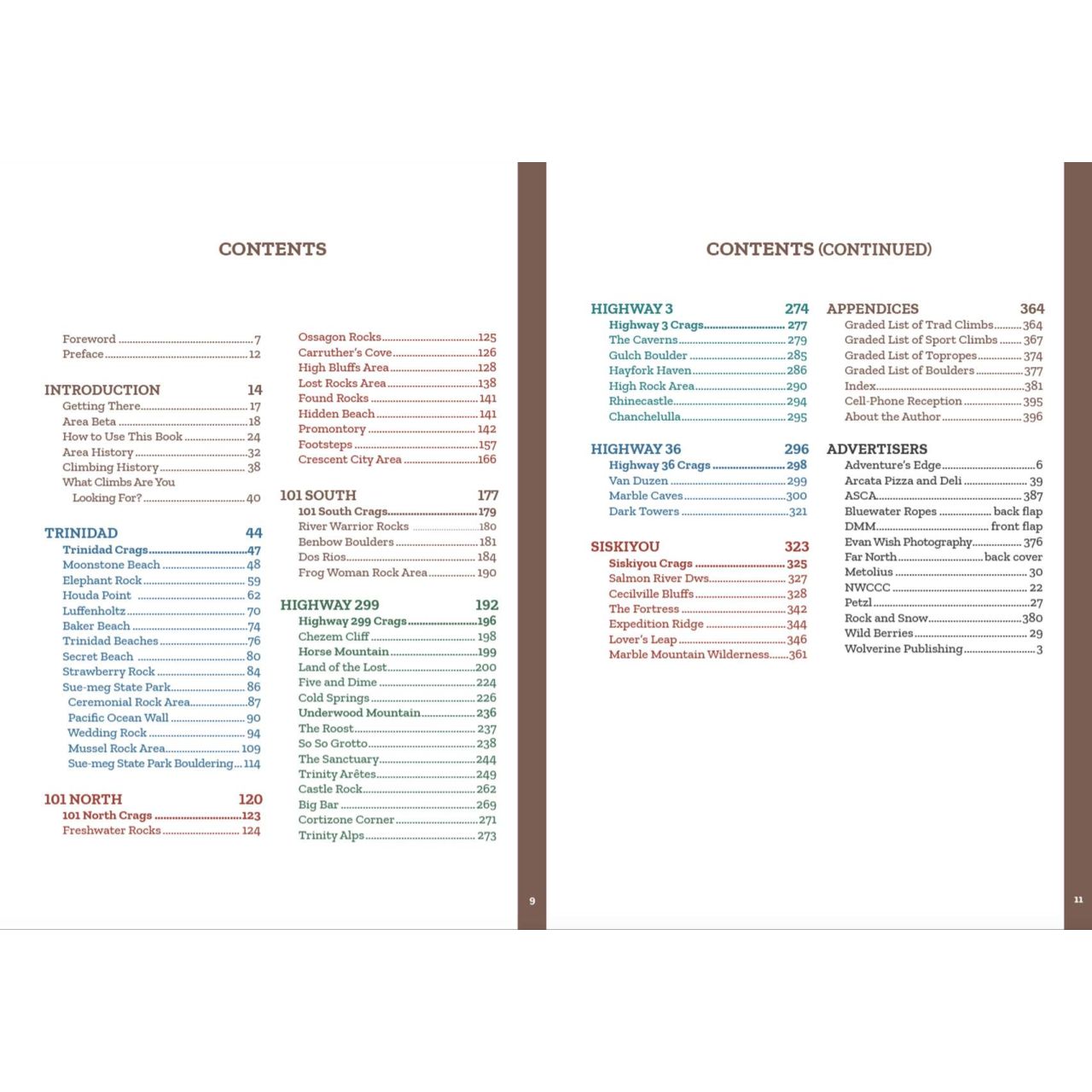 | Areas Included | Coastal areas from Arcata to Crescent City, including Moonstone Beach, Sue-meg (formerly Patrick’s Point) State Park, Lost Rocks, Promontory More Highway 101 fun down south, Santa Rosa to Arcata. 80 pages of Highway 299 crags – Land of the Lost, Cold Springs, Trinity Aretes, and many more. Sweet Highway 36 and Highway 3 crags including the Caverns, Hayfork Haven, Marble Caves. The adventurous Siskiyou County region including Cecilville Bluffs and Lover’s Leap limestone. Many previously undocumented crags, and adventures galore! |