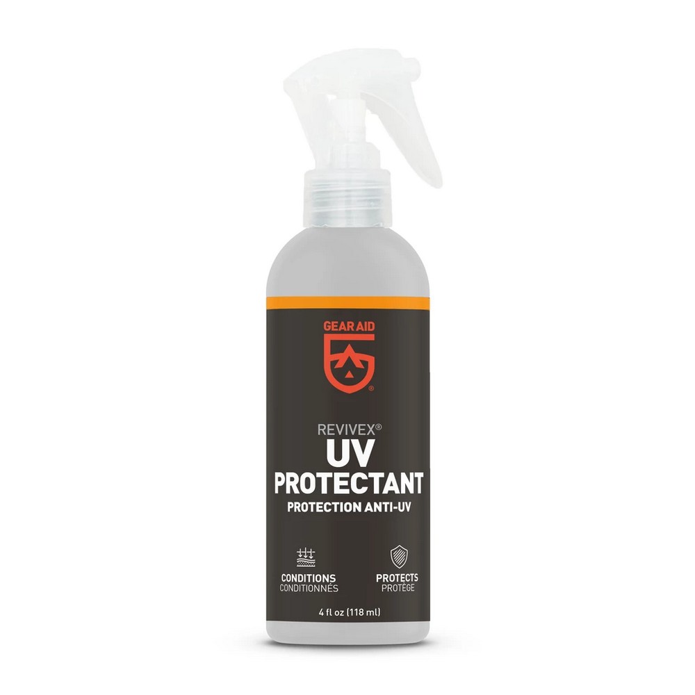 Revivex UV Protectant shields outdoor gear from harmful UV rays. Sunlight can really damage a tent or kayak. Whether it’s made of nylon fabric, plastic, rubber, or fiberglass the sun’s UV rays can break it down fast. Previously known as UV Tech, apply it to anything used outside to prevent cracks and colors from fading. This specialized formula restores gear to its original appearance by replacing lost plasticizers, rejuvenating surfaces and brightening colors. When a sunscreen for gear is needed, apply Revivex UV Protectant before or after sun exposure to keep it looking good.