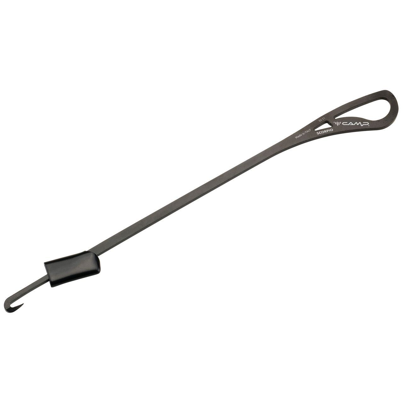 The CAMP Scorpio is a lightweight hook for threading V-thread anchors and removing ice from the tube of an ice screw. 24 cm.