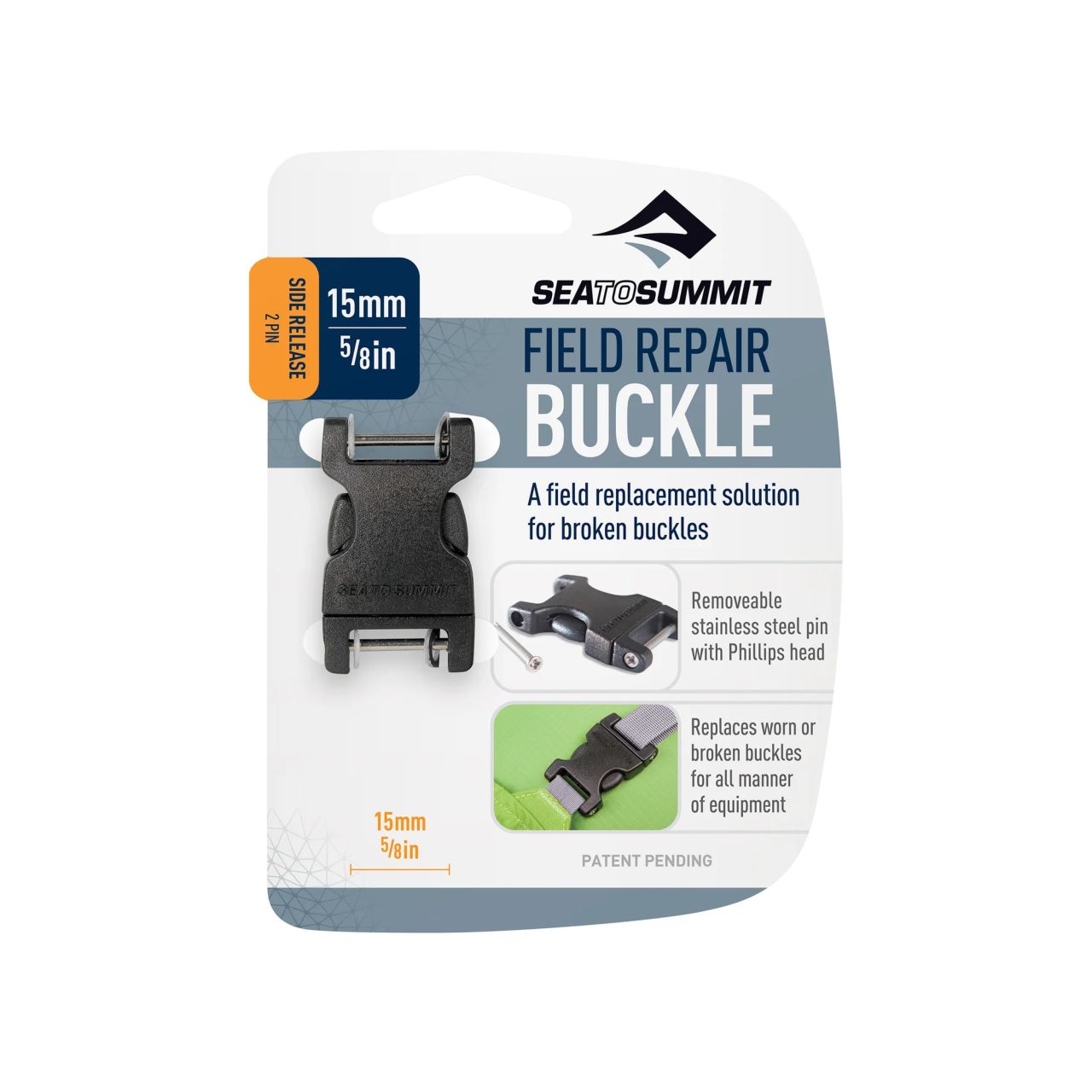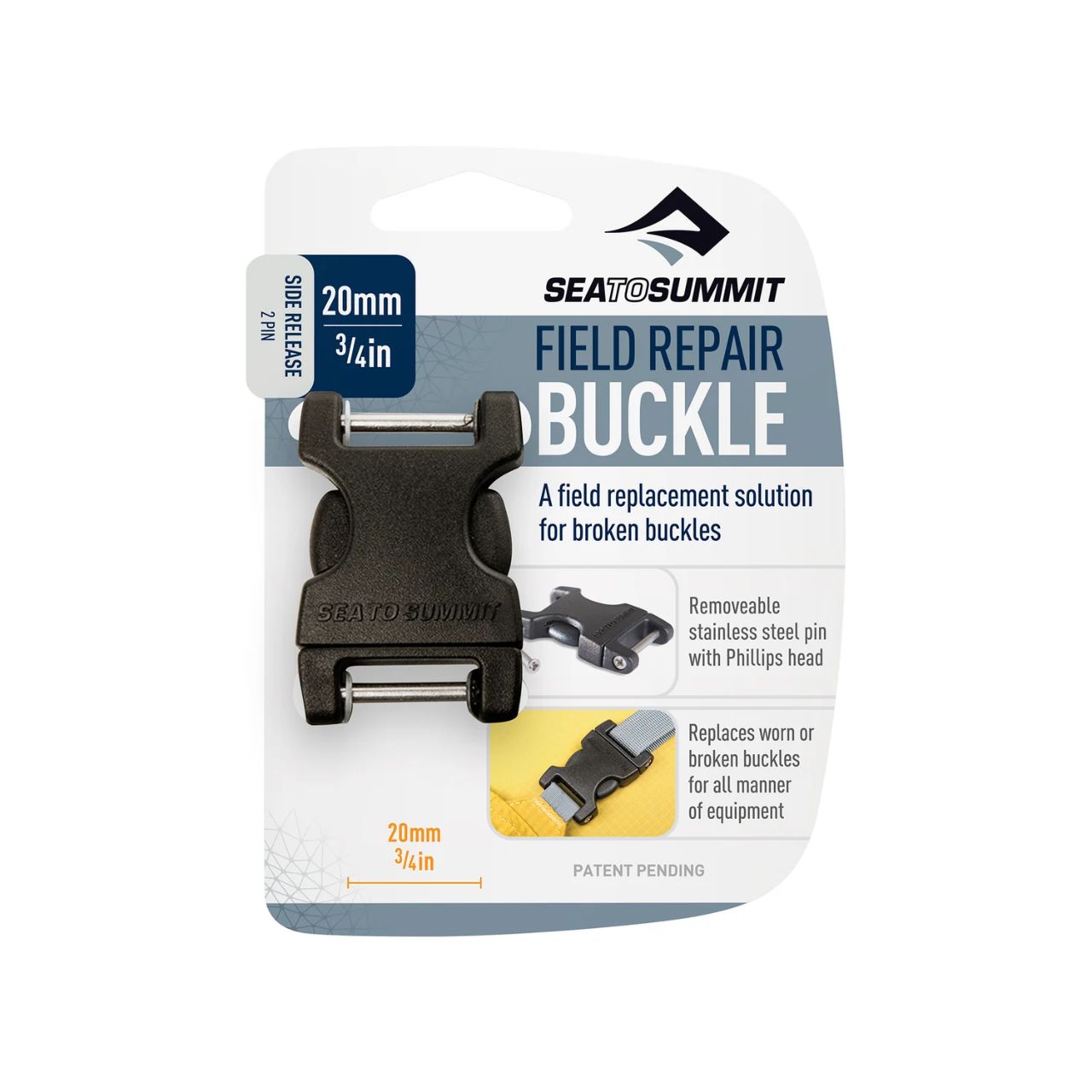 The Field Repair Buckle is designed to permanently repair broken buckles with just the help of a screwdriver. Don’t let a broken buckle ruin your adventure. Be prepared and carry a Field Repair Buckle in your repair kit.