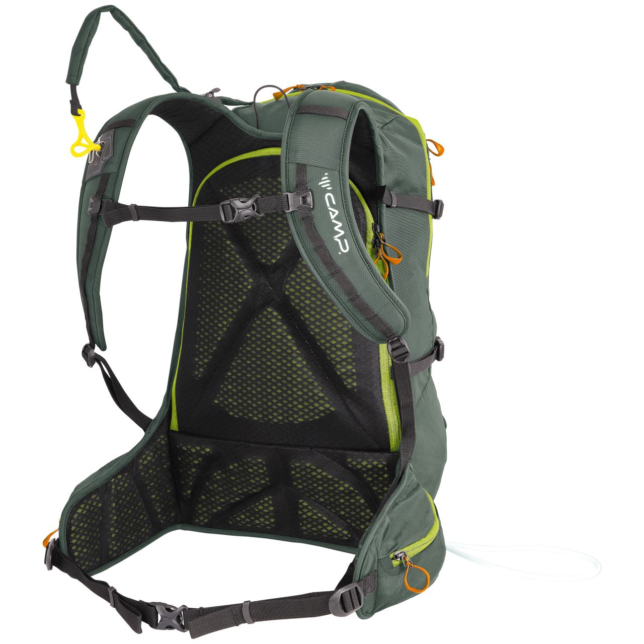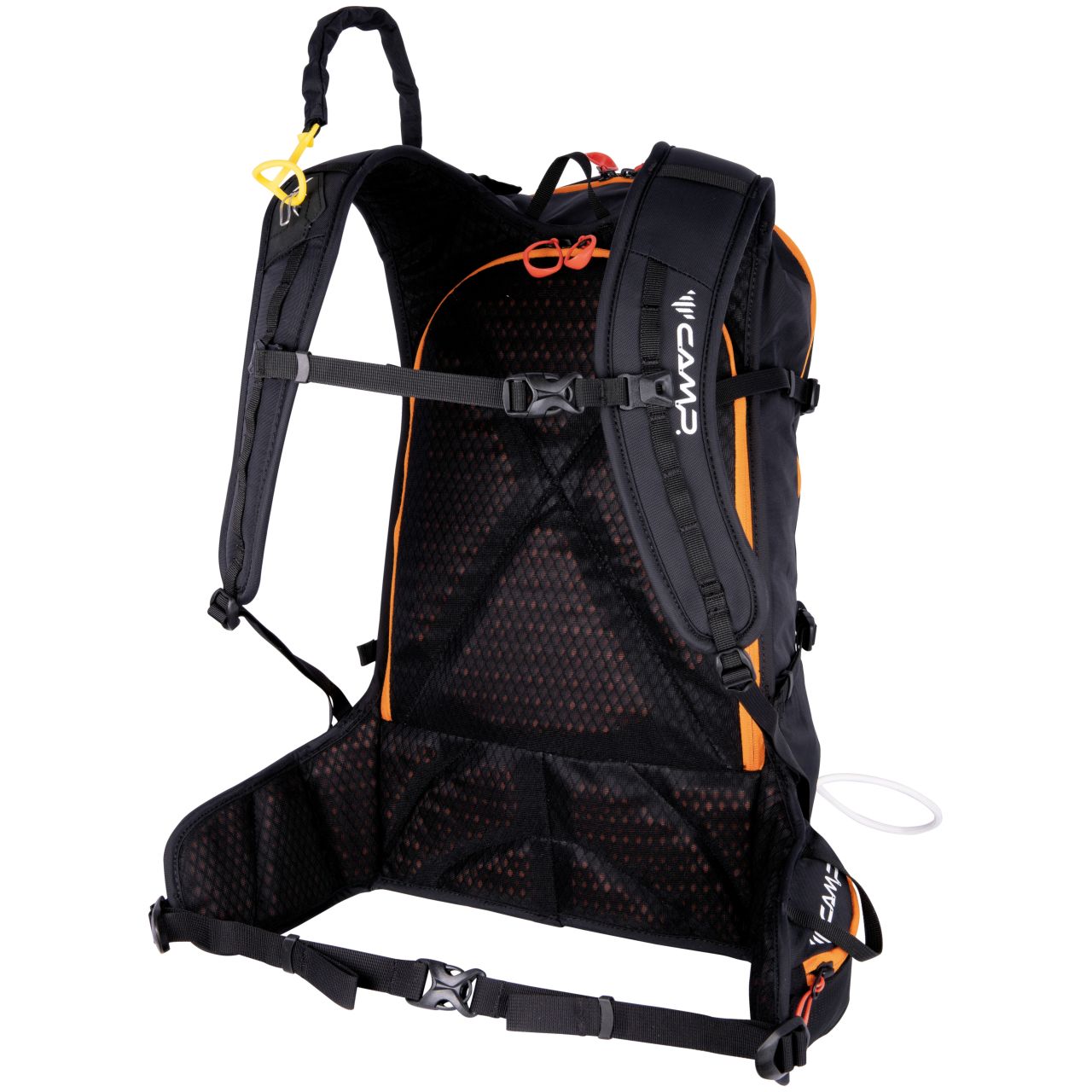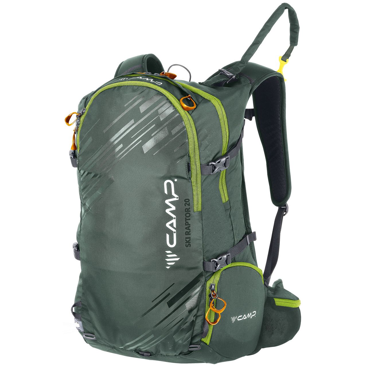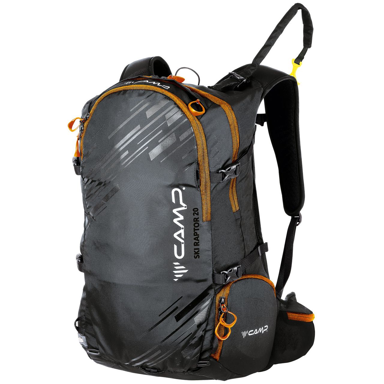 This 20-liter version of the Ski Raptor is designed for lighter, faster freeride missions and for shorter athletes who probably have a hard time finding a freeride pack that fits their torso. The Ski Raptor builds on CAMP’s years of designing purpose-built packs for specific adventures. Utilizing design features from their benchmark skimo race packs, the Ski Raptor is a truly unique freeride pack. Constructed from 420D ripstop nylon for incredible durability. Updated ergonomics for an even more profiled fit and enhanced load stabilization. New ventilated back panel and external edging on the shoulder straps for increased comfort. Other popular features remain, like the X-Press ski carrying system that allows skis to be attached and removed without removing the pack, Full BackDoor access that makes gear accessible independent of where it is layered in the pack, hide-away systems for carrying essential gear like poles, axes and helmet, a dedicated fast access pocket on the front for shovel and probe, and a dedicated side entry crampon compartment. The tail loop for the X-Press ski carrying system is updated so it can be set in two positions making it easy to insert skis whether the pack is fully loaded or mostly empty. Skis can also be carried laterally with straps on the sides. The crampon pocket is also updated with the addition of magnets to help make sure the pocket is easy to close without removing the pack.