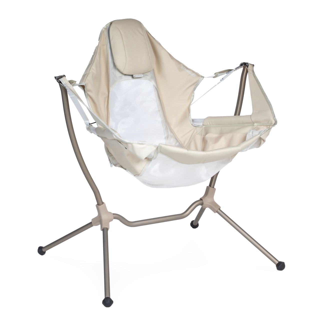 | Other Features | Chair auto-reclines to the preferred sitting angle. Simply lean back and shift your body weight. Tensioned straps support a deep reclining angle to offer you a full view of the night sky. A generous padded headrest can be adjusted on the fly to support a wide range of heights. Unlike traditional rockers, Stargaze is designed with a low center of gravity for stability on any surface, even rocky, sandy, or uneven ground. Setup is intuitive, quick, and easy with fewer pieces and anodized poles that naturally slot into place. Packing up is hassle-free, with streamlined disassembly, no tangling, and an included carrying case. The aircraft-grade aluminum suspension frame is sturdier than most camp chairs, yet still packs down quickly and compactly. Two integrated flexible cupholders keep beverages or accessories close at hand and secure. Non-absorbent monofilament mesh is cool and breezy, resists bacteria, withstands sun exposure, and quickly drains water if left in the rain. Includes carrying case with adjustable shoulder strap for easy portability. |