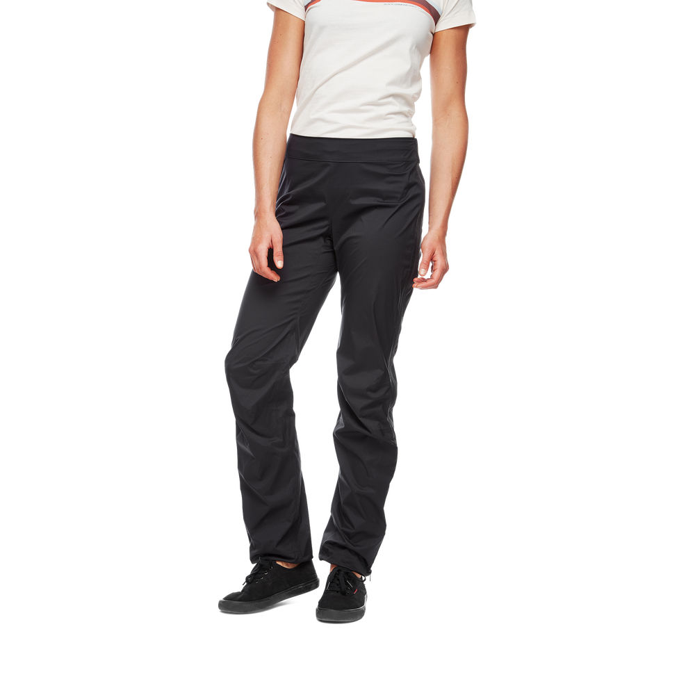 | Other Features | Built with BD.dry™. Black Diamond’s engineered waterproof/breathable/windproof technology. BD.dry 2.5L. 10, 000 mm waterproof rating. 10, 000 g/m2/24hr breathability rating. Stretch fabric. Gusset seat and articulated knees for increased mobility. Full length double-separating DWR treated side zippers. Snap bottom closure with internal cord adjust at hem to customize fit. Stows into back-right zippered pocket with carabiner clip loop. Regular Fit. |