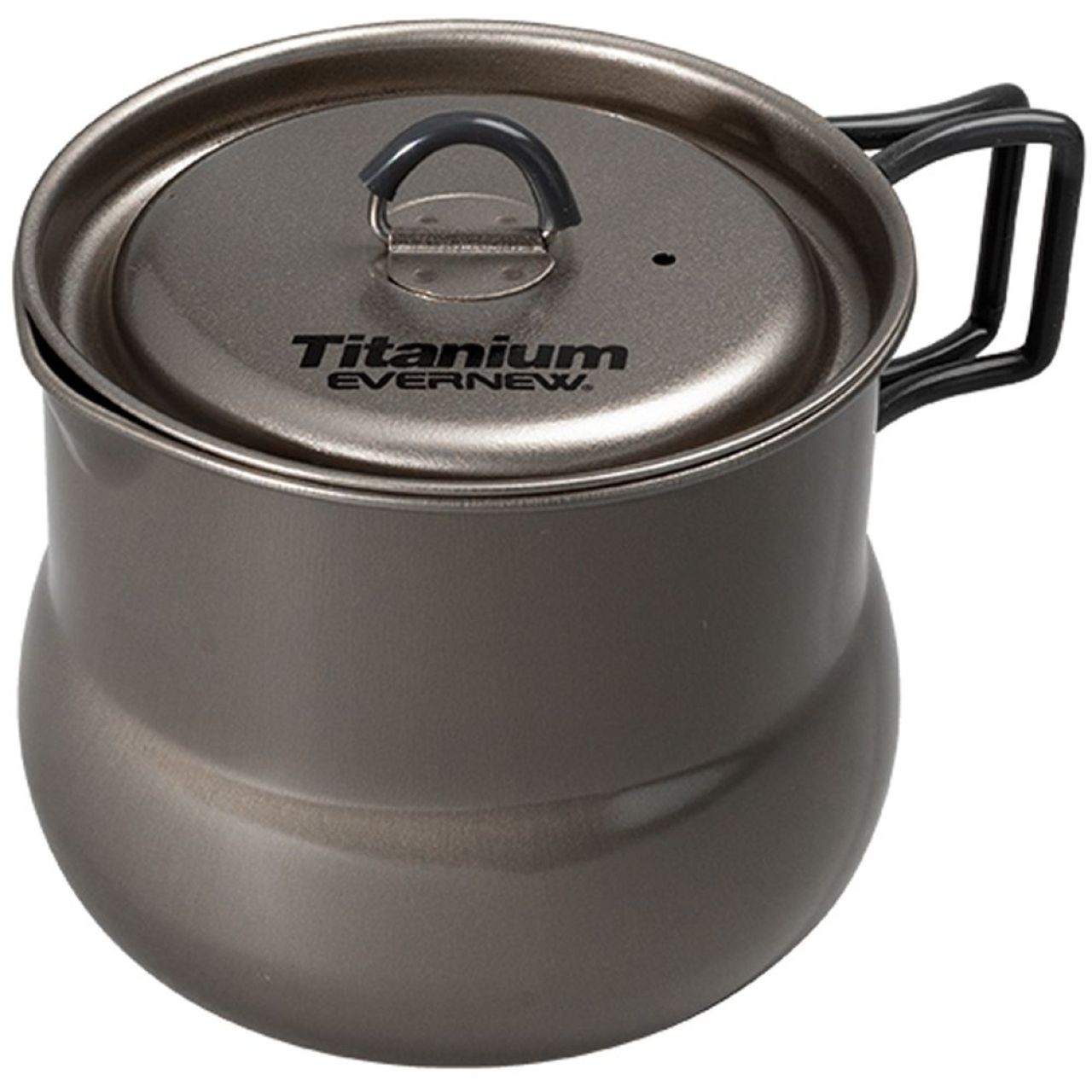 The Evernew Titanium Tea Pot has an oval bottom for increased stability on a stove and a folding handle.