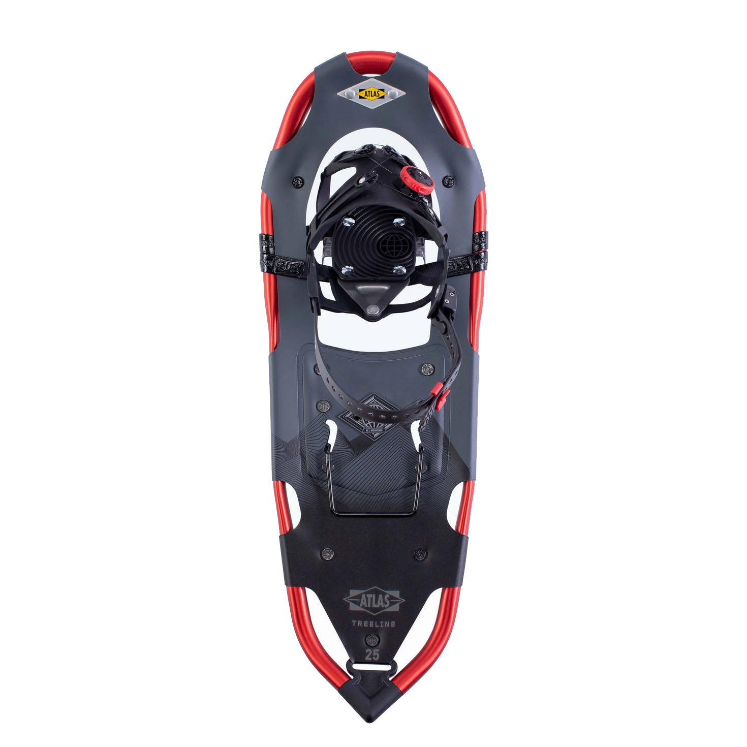 The Treeline features Atlas’s Spring-Loadedâ„¢ Suspension, a patented design that allows for impact absorption, natural side-to-side flex and deeper crampon penetration for an uncompromised stride Comfort and security come standard with the Wrappâ„¢ MTN binding which utilizes the BOA® Fit System to provide a fast, precision fit with on-the-fly adjustability. The variable forming of the aluminum Reactivâ„¢ frame changes from a cylindrical to an elliptical shape to increase strength where the frame bears the greatest load for a stiffer, more responsive snowshoe frame. When coupled with soft, smooth Nytex decking the Reactiv frame provides ample flotation and stability in deeper snow. Hearty, reliable traction is a hallmark of our all-mountain snowshoes and the Treeline is no exception! The forefoot grip of the All-Tracâ„¢ toe crampon and Advanced Aft Traction provide the necessary grip on varying snow conditions. Reactiv-Tracâ„¢ Frame: Our most recent patent, the variable forming of our aluminum ReactiVâ„¢ frame changes from a cylindrical to an elliptical shape to increase strength where the frame bears the greatest load for a stiffer, more responsive snowshoe frame. Nytex Decking: Flexible Nytex decking is forgiving and quiet when hiking in the cold, providing durability without the weight. Wrappâ„¢ MTN Binding: The Wrappâ„¢ MTN binding blends Atlas’ proven Wrappâ„¢ series design combined with Boa® Closure System crafted for All-Mountain snowshoeing use. Providing a secure fit each and every time, the simple twist of a dial delivers consistent precision when the terrain gets technical. BOA® Fit System: Stainless steel lace evenly distributes pressure across the foot for the most comfortable and secure fit. Dial in to fast, effortless, precision fit. Spring-Loadedâ„¢ Suspension: Precision-focused, Spring-Loadedâ„¢ Suspension’s (SLS) patented design, suspends the snowshoe close underfoot so it can move freely with its intended articulation, absorbing impact, flexing naturally side-to-side, and allowing deeper crampon penetration into the slope for an compromised stride. Pivot Limiter: Pivot Limiter allows a more comfortable steadily stride. All-Tracâ„¢ Toe Crampon: The time-tested geometry of our All-Tracâ„¢ toe crampon provides traction in all directions. Wider traction tabs on the sides and corners complement sharp front and rear points for confident hiking. Advanced Aft Traction: Our surest grip comes from the sharp ice tips on the heel cleat. With four angled and ridged side rails and the integrated heel lift bar, the user can expect superior traction and deeper snow penetration with each step. Rockered Footbed: 19° Heel Lift: Provides relief when climbing those long steep hills, and easily stores for flats and descents. SIZE LOAD* 25 120 – 200 lbs 30 150 – 250 lbs 35 180 – 300+ lbs *Load = User’s Bodyweight + Gear
