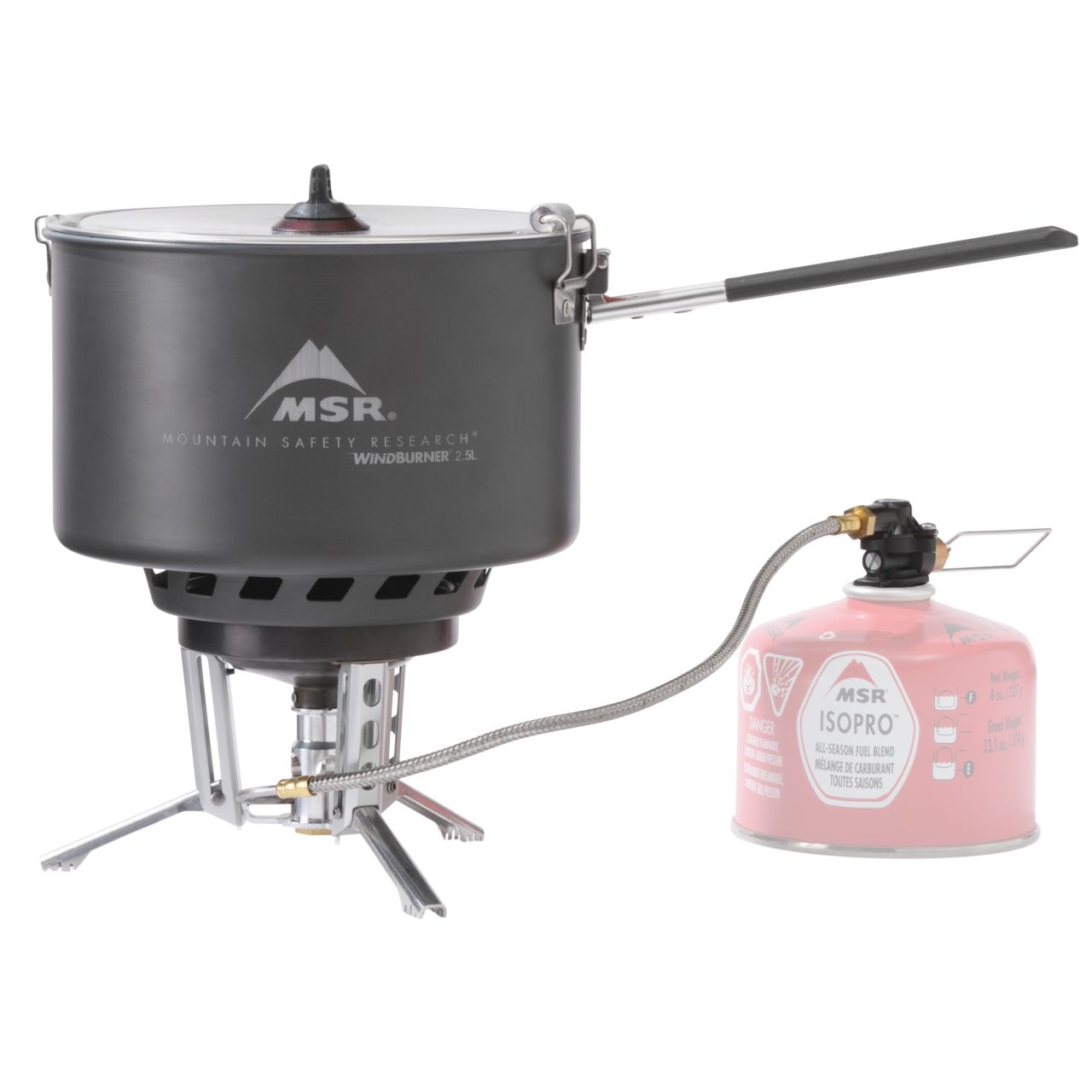 For backpacking adventurers and group campers dreaming of more than freeze dried meals, the MSR WindBurner Group Stove System delivers a quality cooking experience in the backcountry—maintaining its performance even in windy and cold conditions. The windproof and pressure-regulated stove system features a 2.5 L sauce pot for 2-4 people to share a simmered feast, and the pot’s ceramic-coated surface offers nonstick performance and easy cleanup. The stove is optimized for all WindBurner cookware, allowing for a range of cooking styles. The compact system nests perfectly inside its pot without rattling, to keep packs quiet on the trail.
